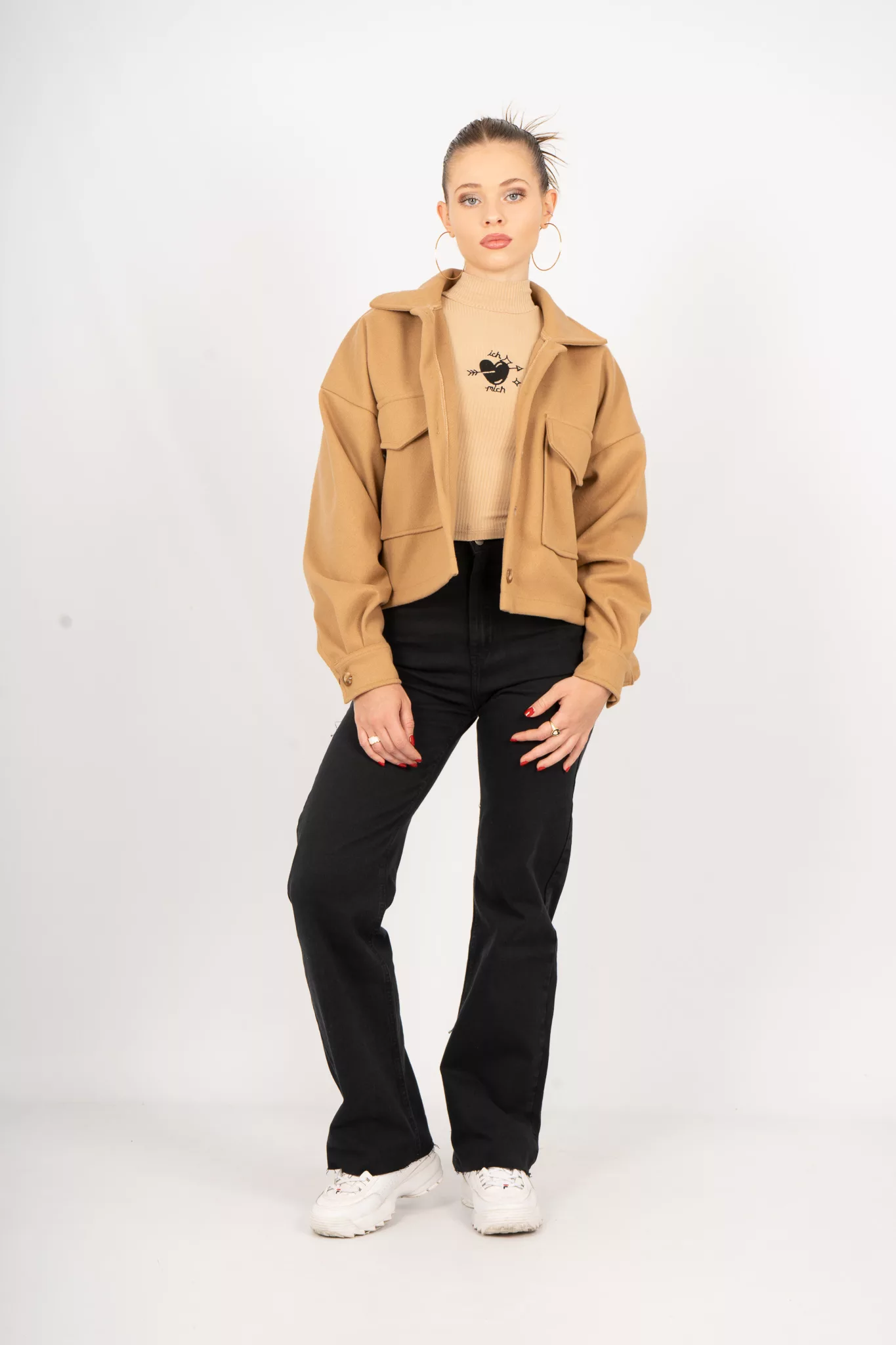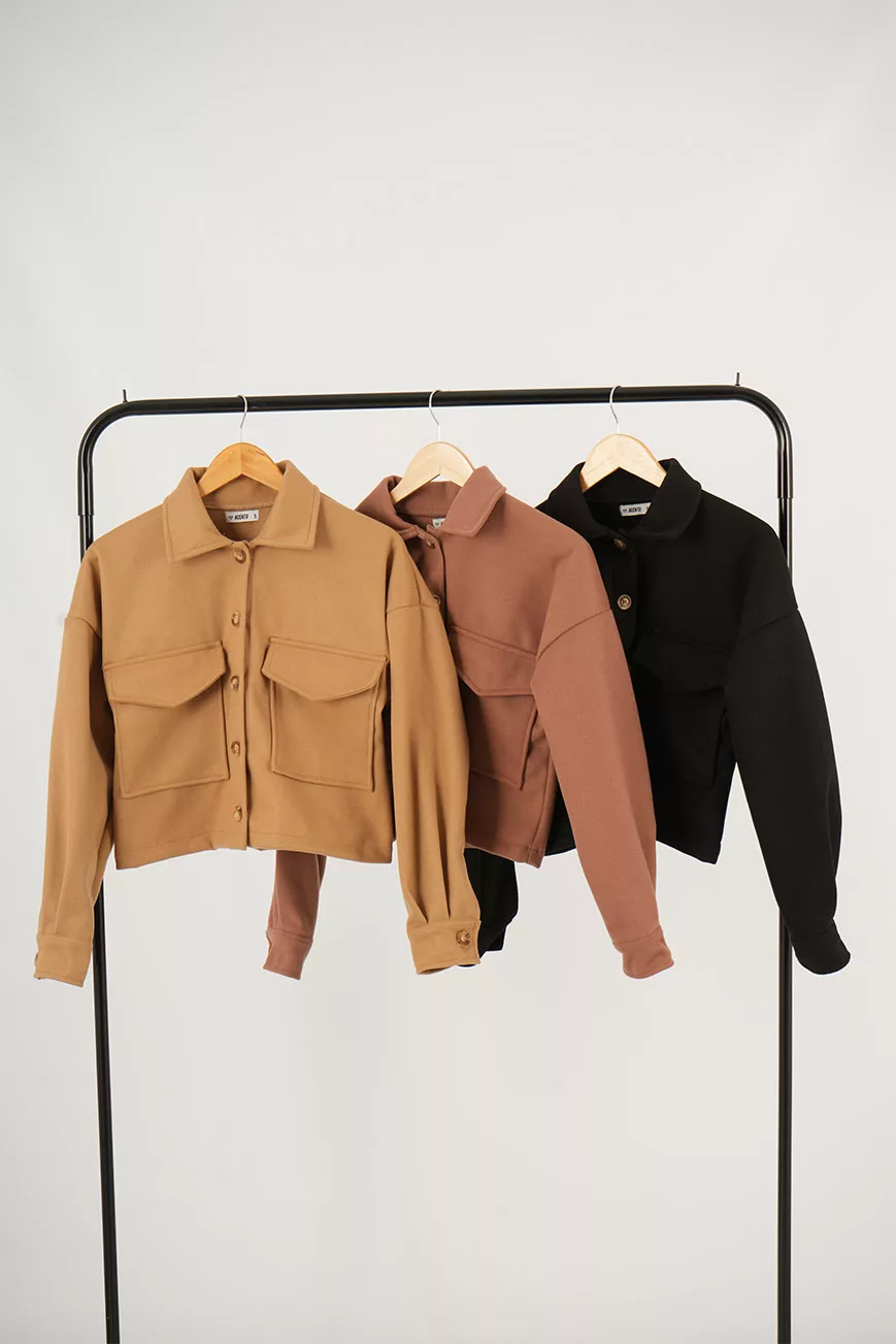 C096 – Chaqueta Lily Corta Con Bolsillo Grande Doble Paño Liso