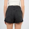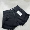 SD374 – Short Denim Negro Rigido Desflecado Con Roturas (Laisa)