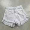 SD376 – Short Denim Blanco Rígido Desflecado Con Roturas (Naira)