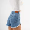 SD381 – Short Denim Celeste Rígido Desflecado Con Roturas (Elena)