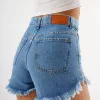 SD386 – Short Denim Azul Rígido Desflecado Con Dos Roturas (Katherine)