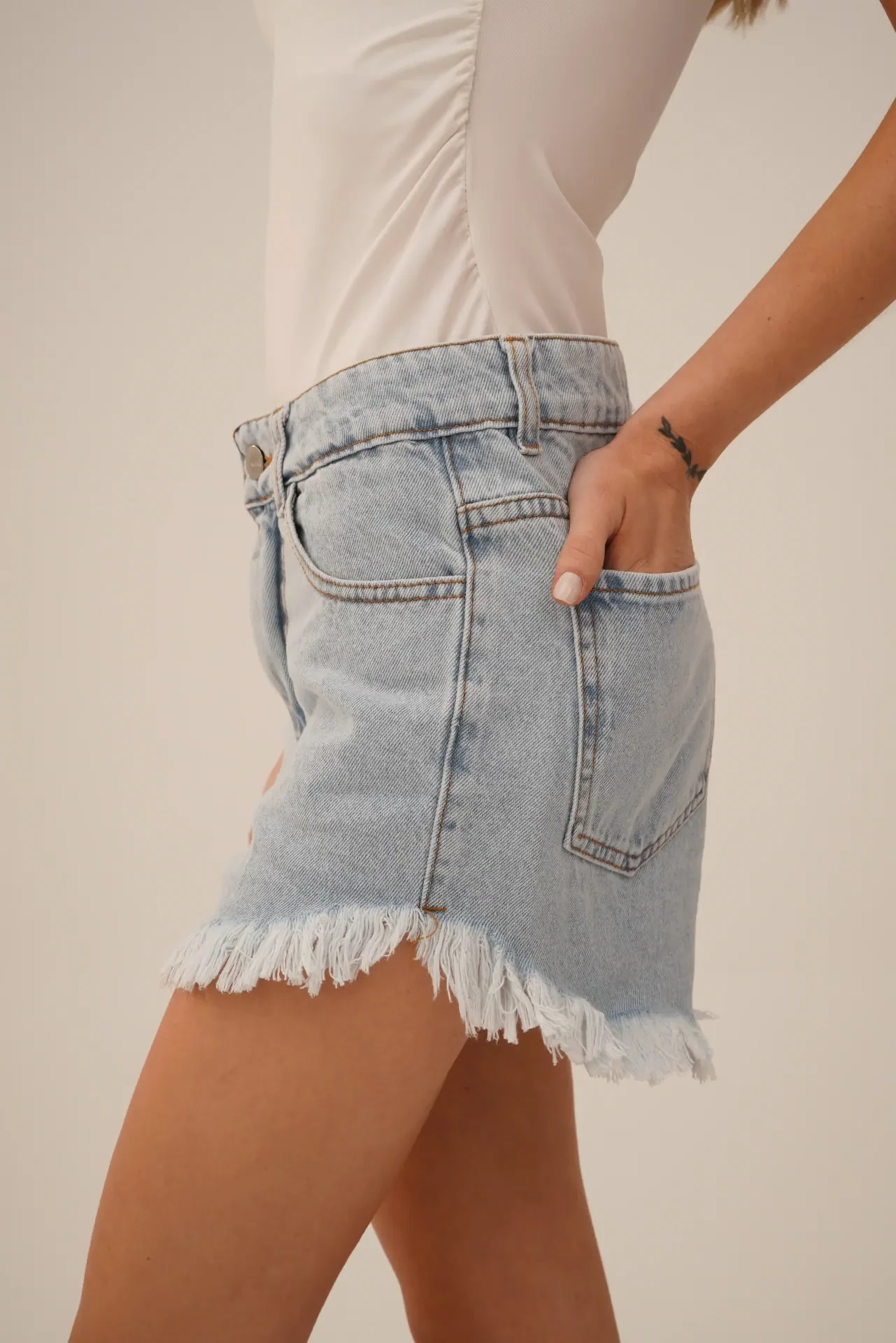SD390 – Short Denim Desflecado Celeste Mas Clarito (Meryl)