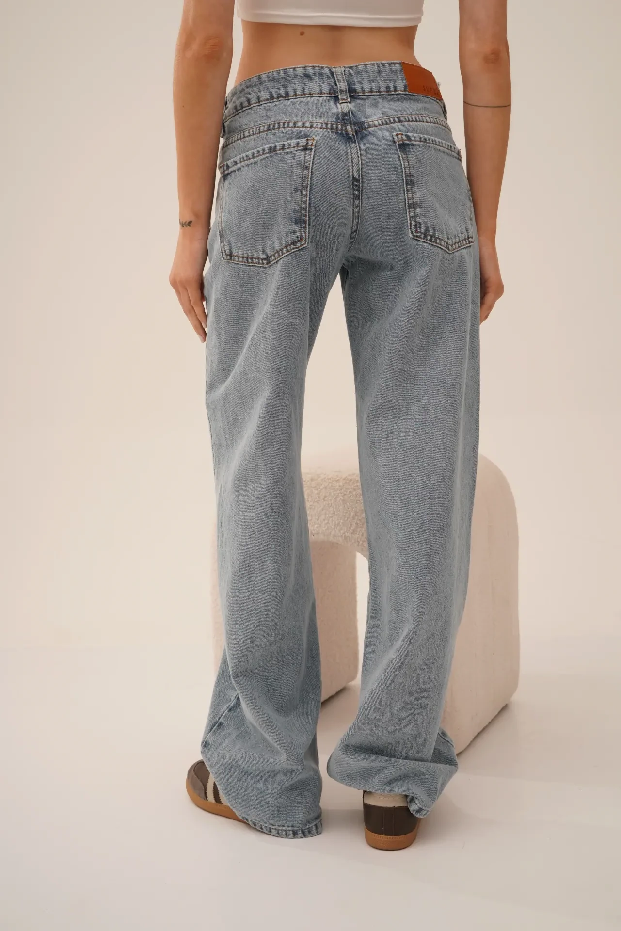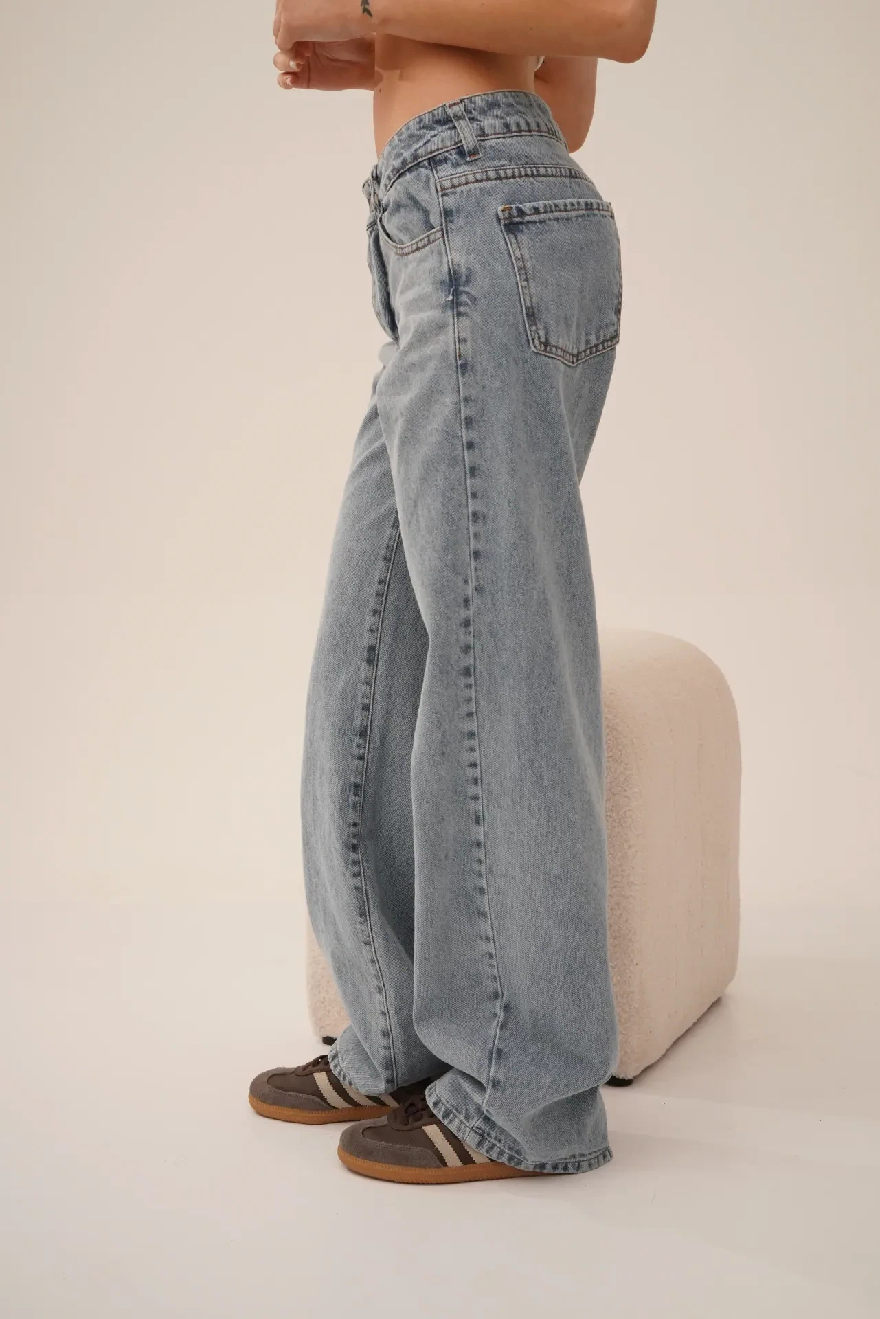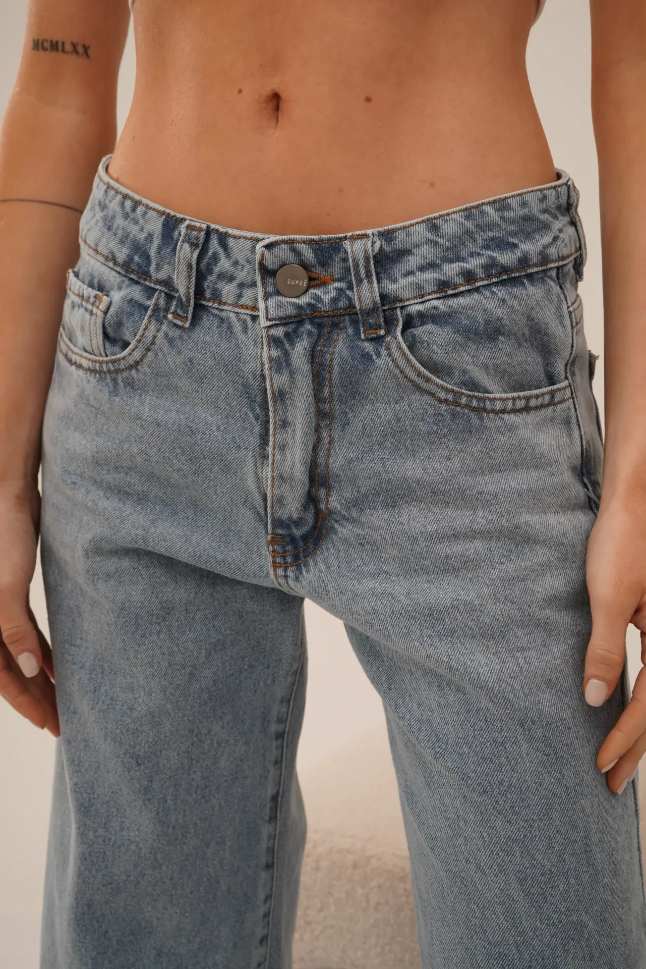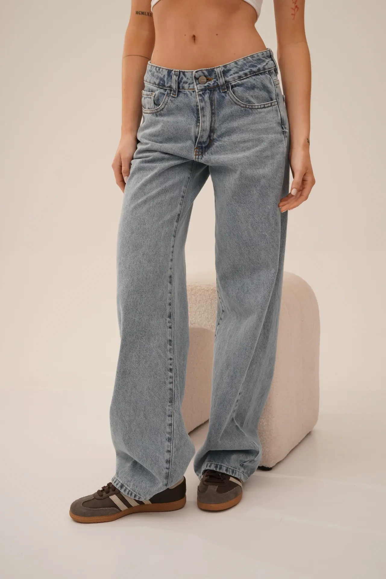 SD423 – Wide Leg Tiro Bajo Denim Celeste Rígido (Lali)
