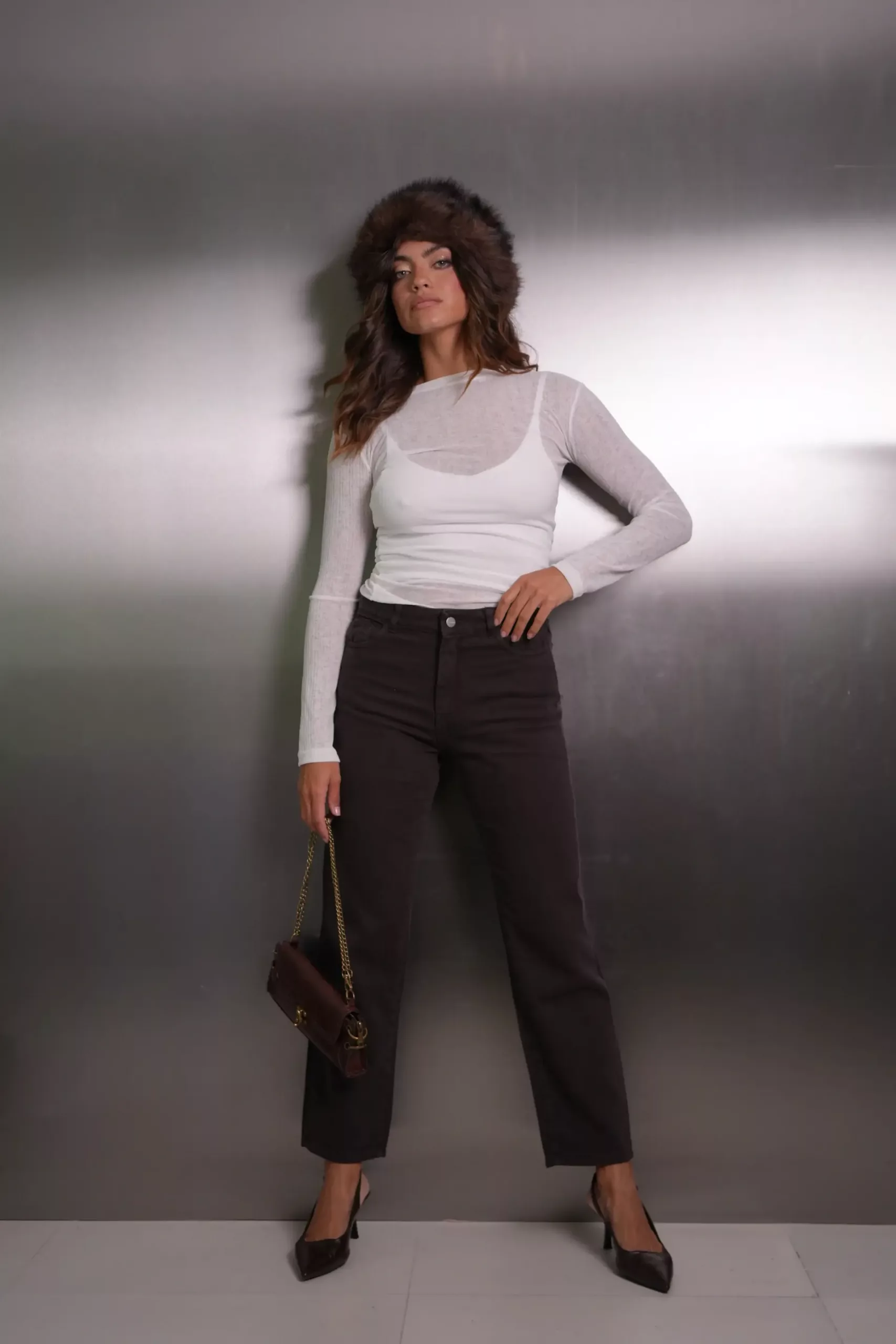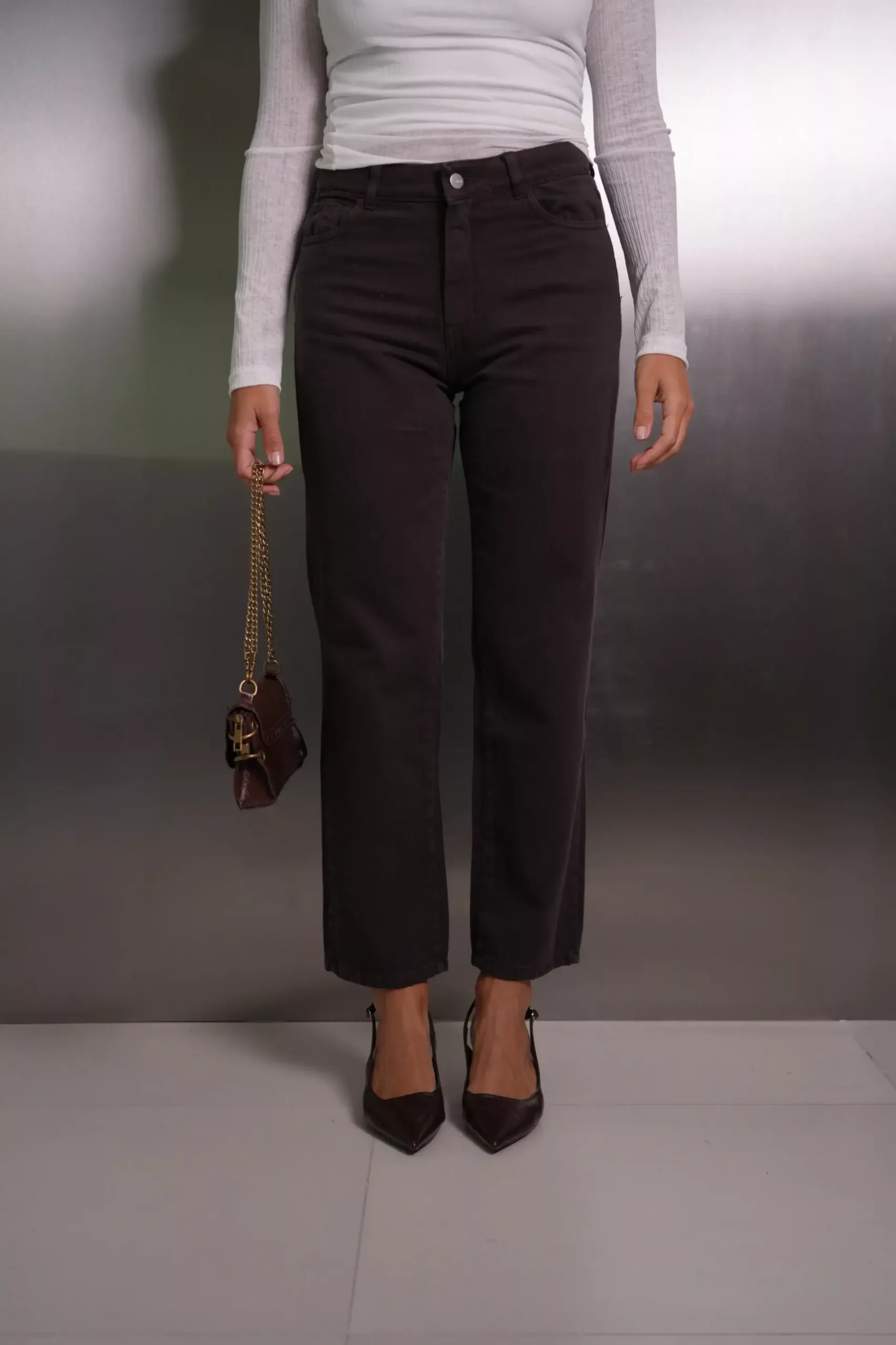 SD454 – Straight Cropped Denim Chocolate Rigido (Mokka)