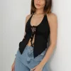 T781 – Top Giada Con Cordon Frunce En Pico Microfibra