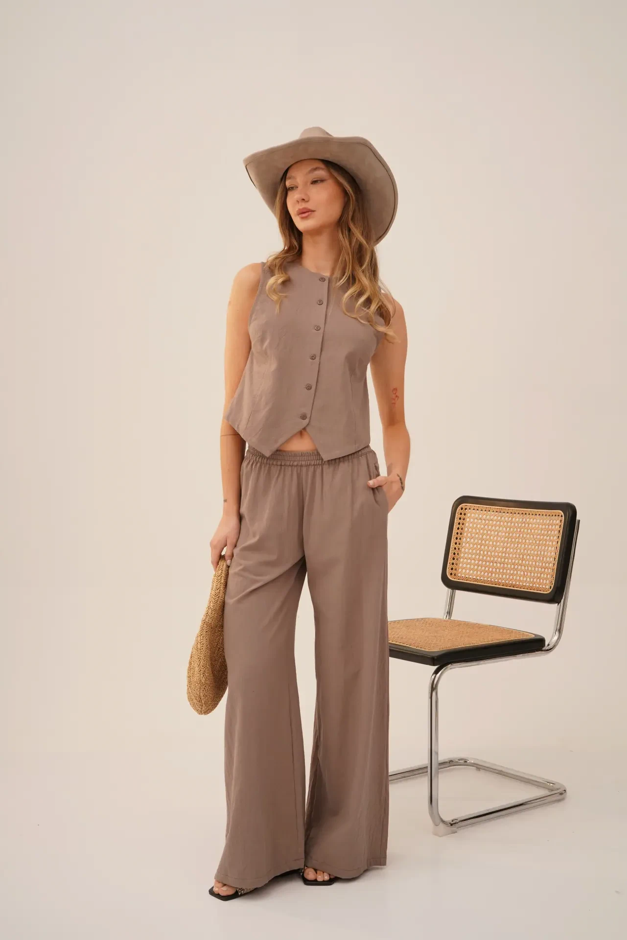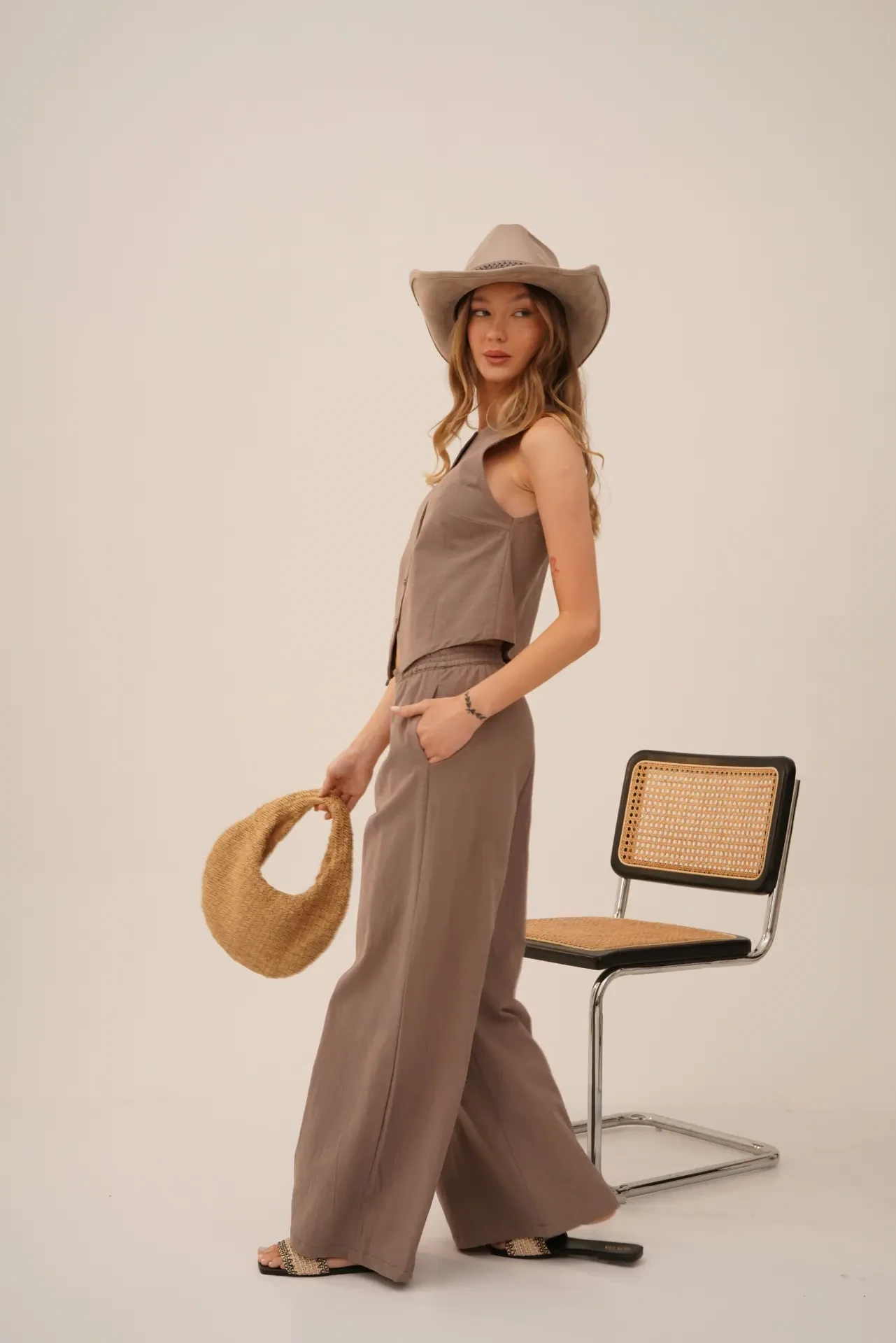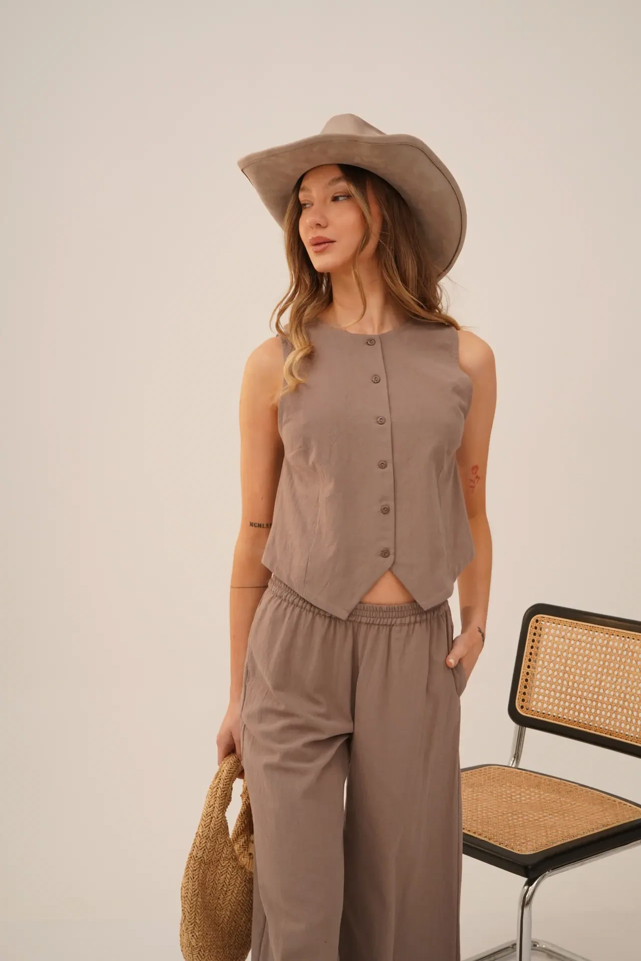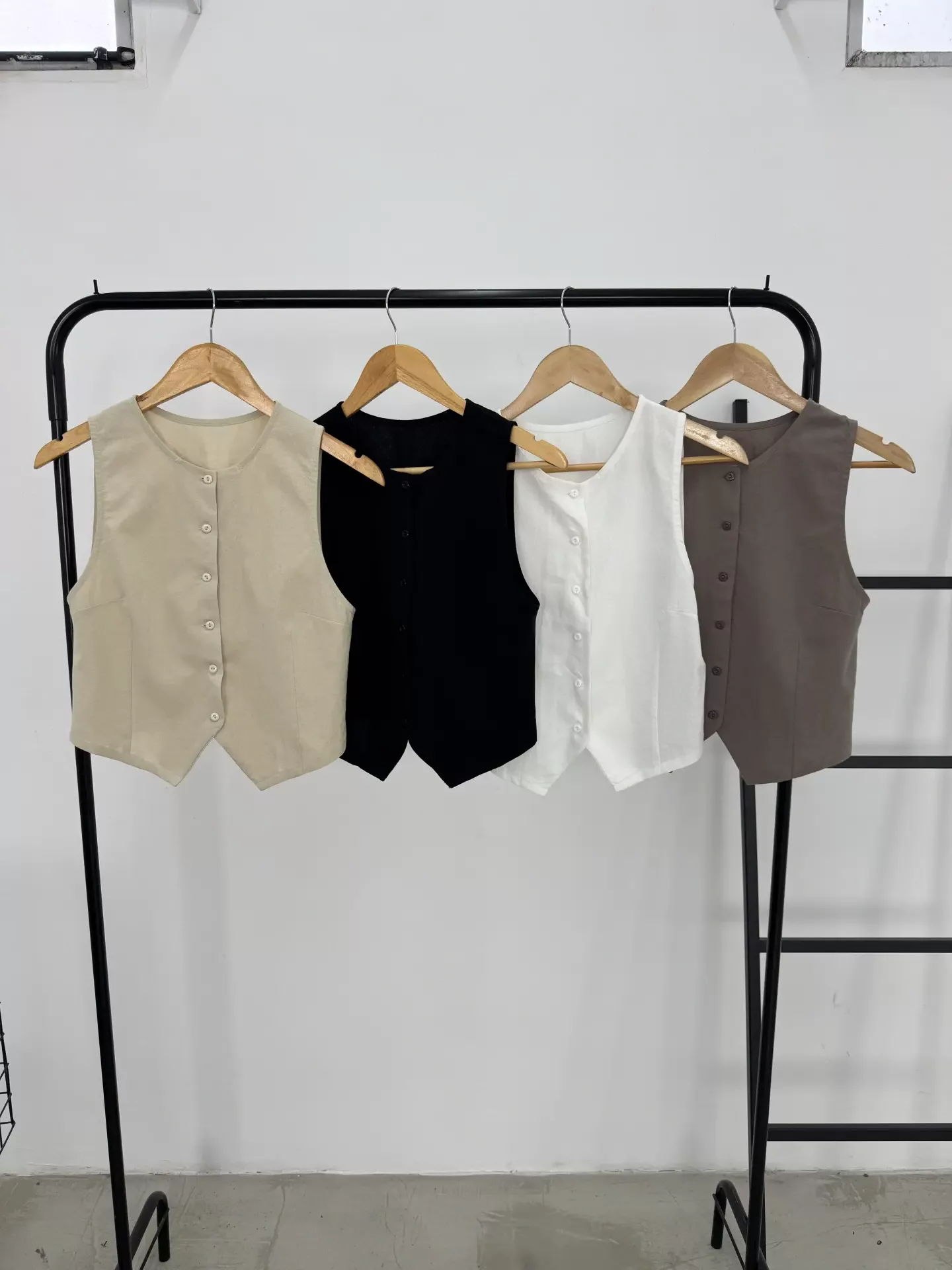 T816 – Chaleco Damasco Con Botones Y Pinza Cotton