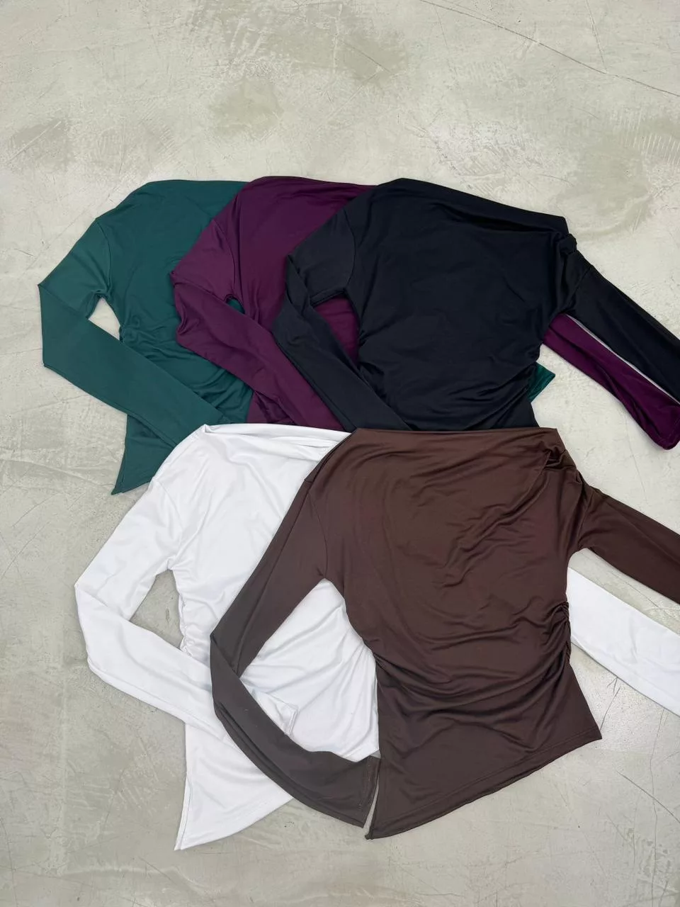 T832 – Camiseta Stariel Asimetrico Frunce Lateral Manga Larga Modal Soft
