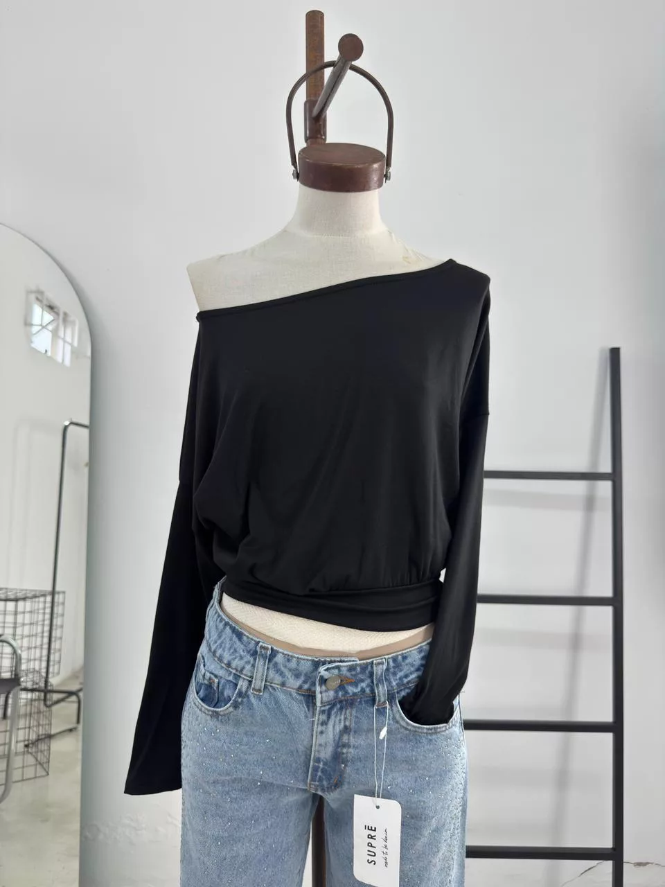 T844 – Top Avoria Cuello Bote Manga Larga Modal Soft