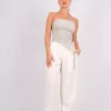 T602 – Top Silver Strapless Con Frunce Asimetrico Lurex