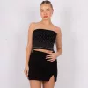T646 – Top Strapless Shiny Hot Fix Scuba Crepe